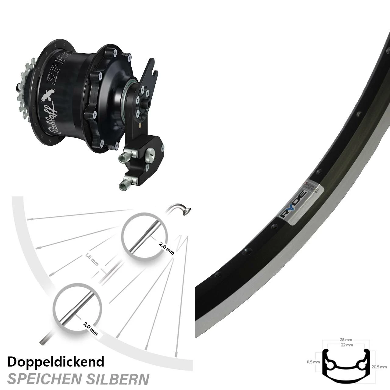 Technische Daten Hinterrad Ryde Andra 35 Felgenbremse schwarz und Nabe Rohloff Speedhub 500/14 CC EX OEM2 schwarz