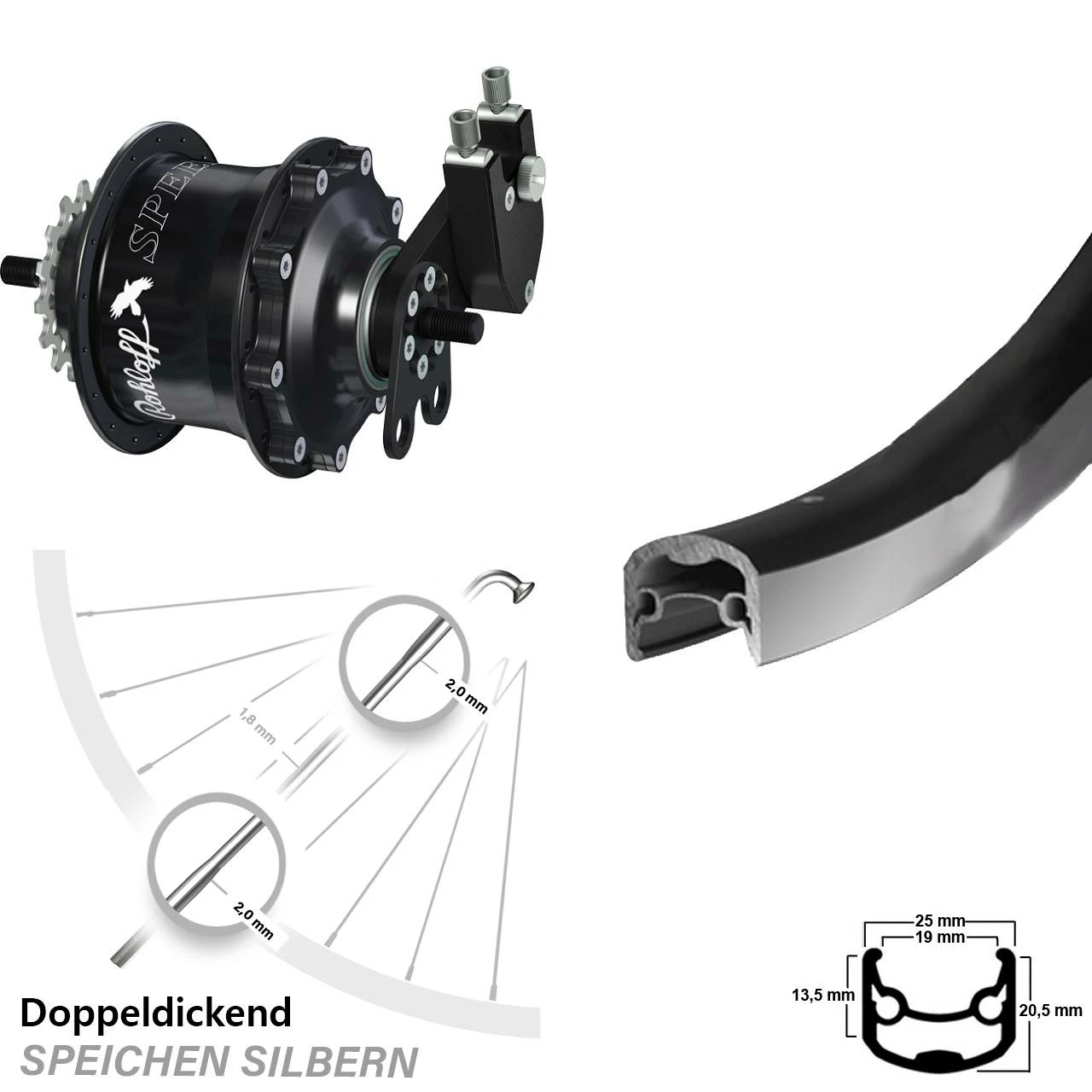 - Nabenart: Nabenschaltung 14 Gang, mit Vollachse, mit langer DrehmomentstĂŒtze