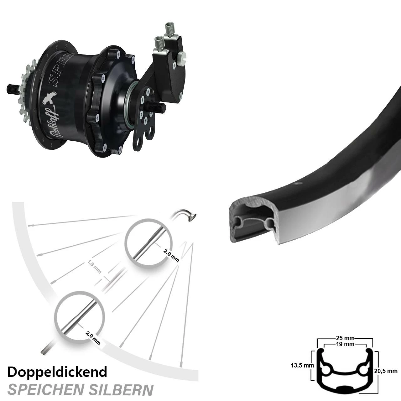 - Hinterrad 26 Zoll Ryde Andra 30 schwarz mit Getriebenabe Rohloff Speedhub 500/14 TS EX Tandem schwarz schwarz