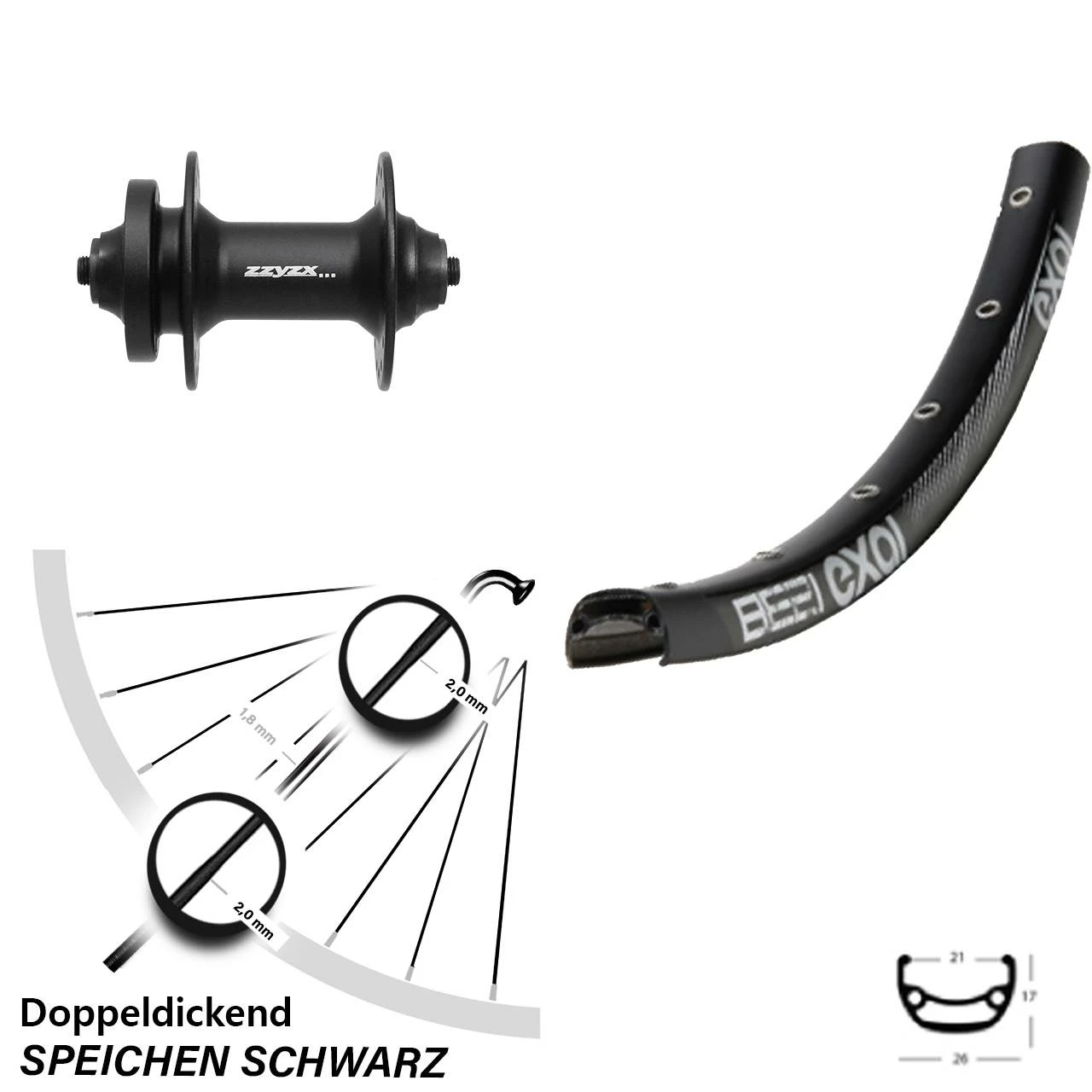 Technische Daten Vorderrad Exal BE 21 schwarz mit Nabe Formula ZZYZX DC-21 schwarz