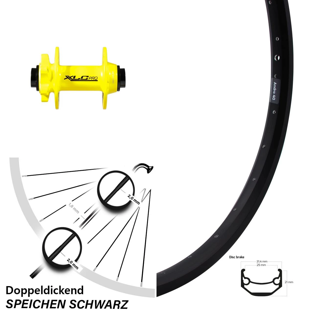 Produktbeschreibung 26 Zoll Vorderrad Ryde Andra 40 Disc mit XLC Evo Nabe gelb