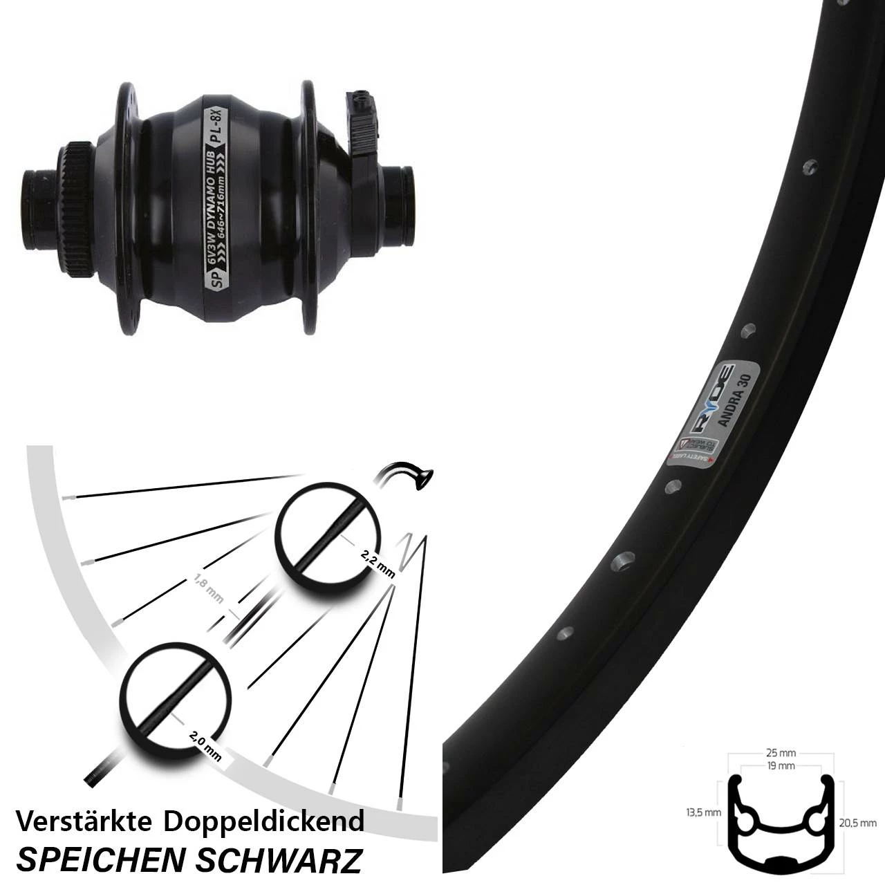 - Vorderrad 26 Zoll Ryde Andra 30 Disc schwarz mit Nabendynamo Shutter Precision PL-8X schwarz