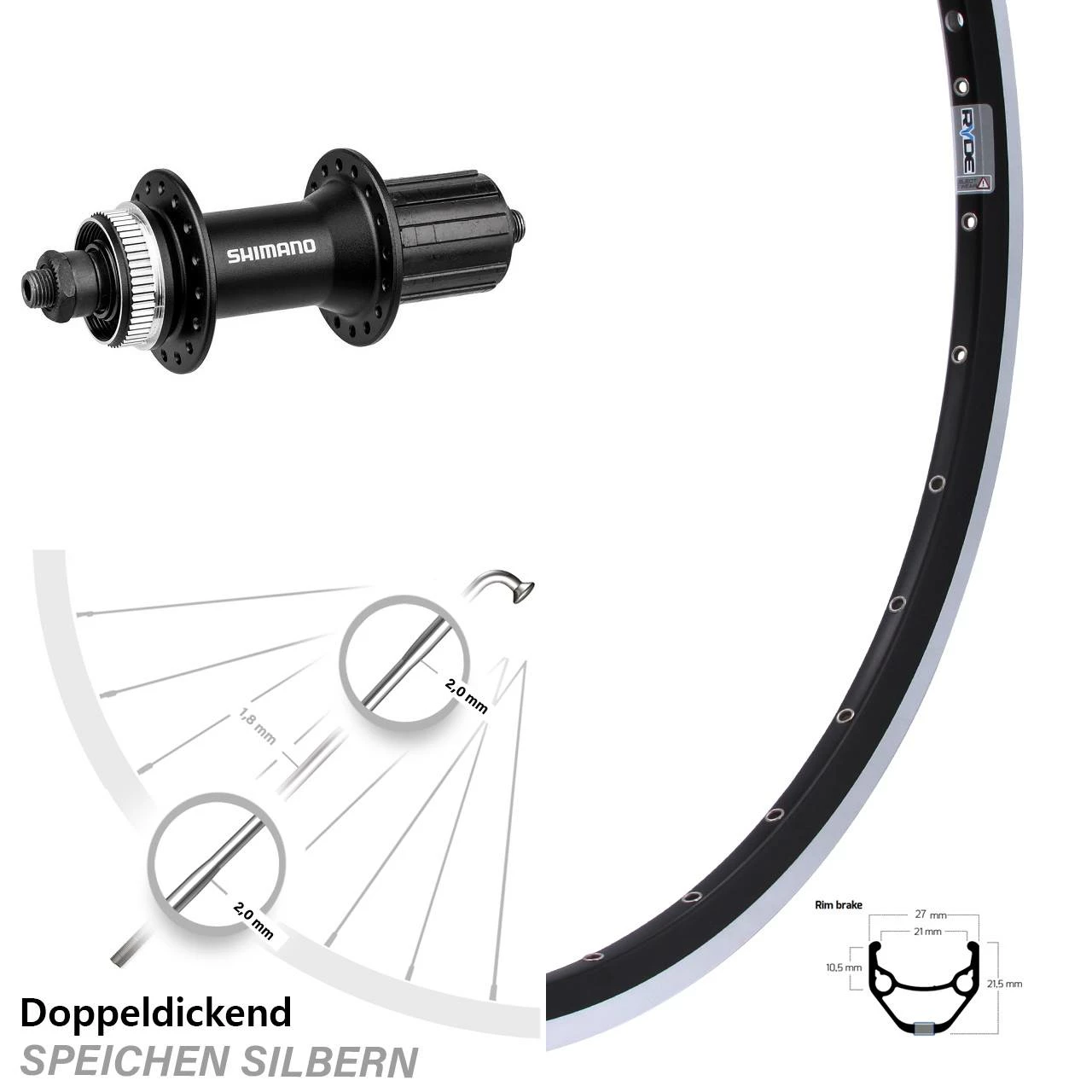 Technische Daten Hinterrad Ryde ZAC 421 Felgenbremse schwarz und Nabe Shimano FH-M4050 schwarz