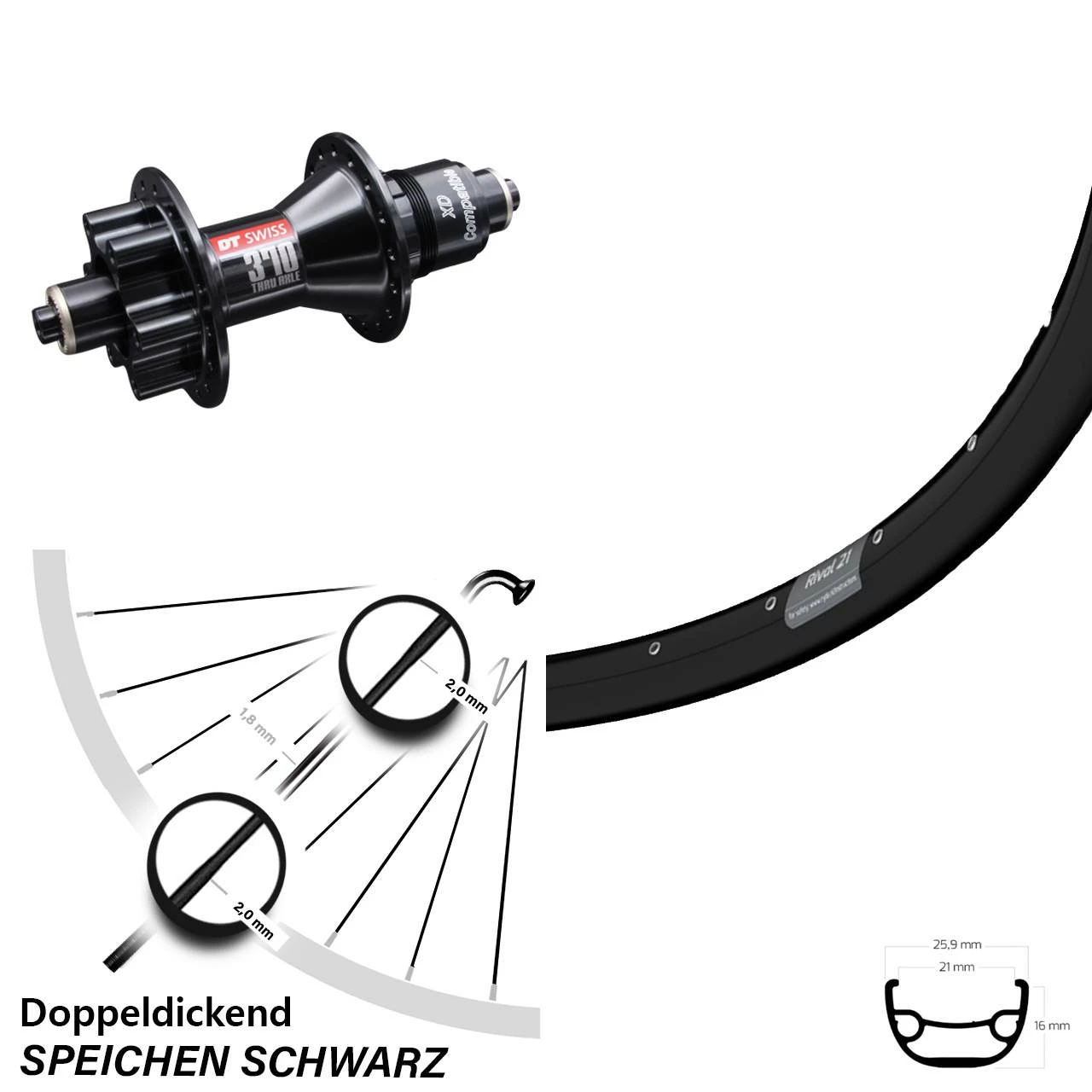 Technische Daten Hinterrad Ryde Rival 21 Disc schwarz und Nabe DT Swiss 370 Disc 6-Loch SRAM XD 5/135