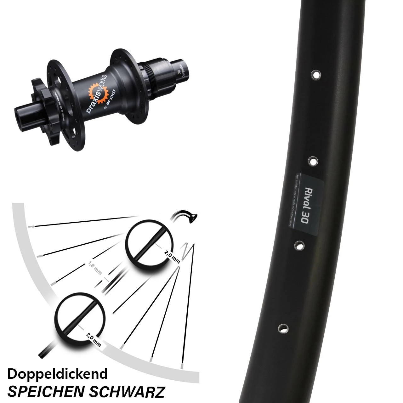 Technische Daten Hinterrad Ryde Rival 30 Disc schwarz und Nabe DT Swiss 350 SL Disc 6-Loch SRAM XD 12/142