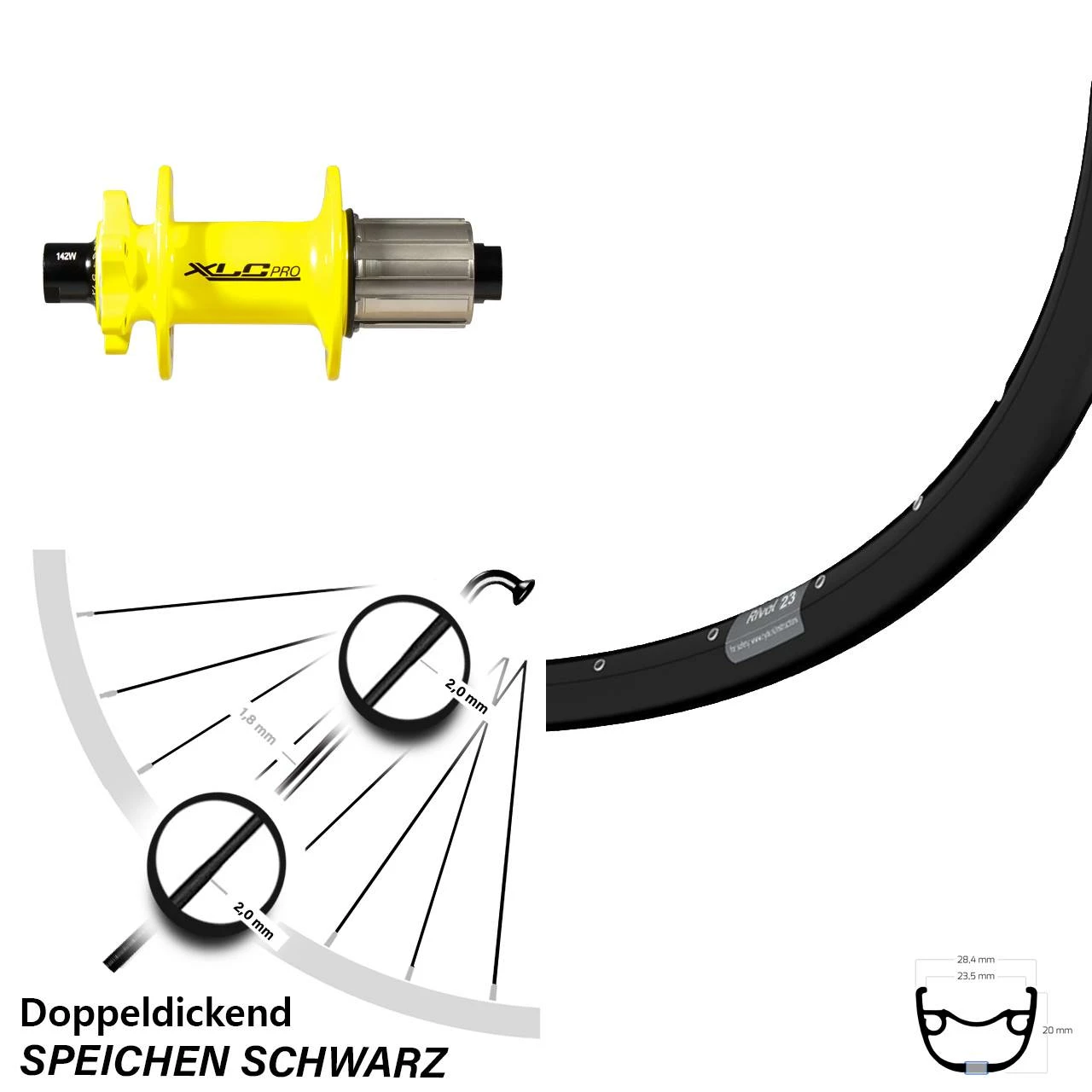 Technische Daten Hinterrad Ryde Rival 23 Disc schwarz und Nabe XLC Pro HR Disc gelb Steckachse
