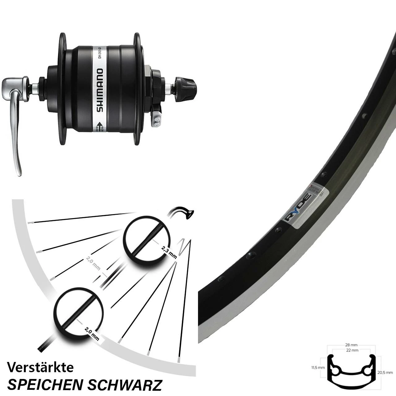 27,5 Zoll Shimano DH-3N31-QR Nabendynamo schwarz mit Schnellspanner Ryde Andra 35 mit verstÀrkten Speichen