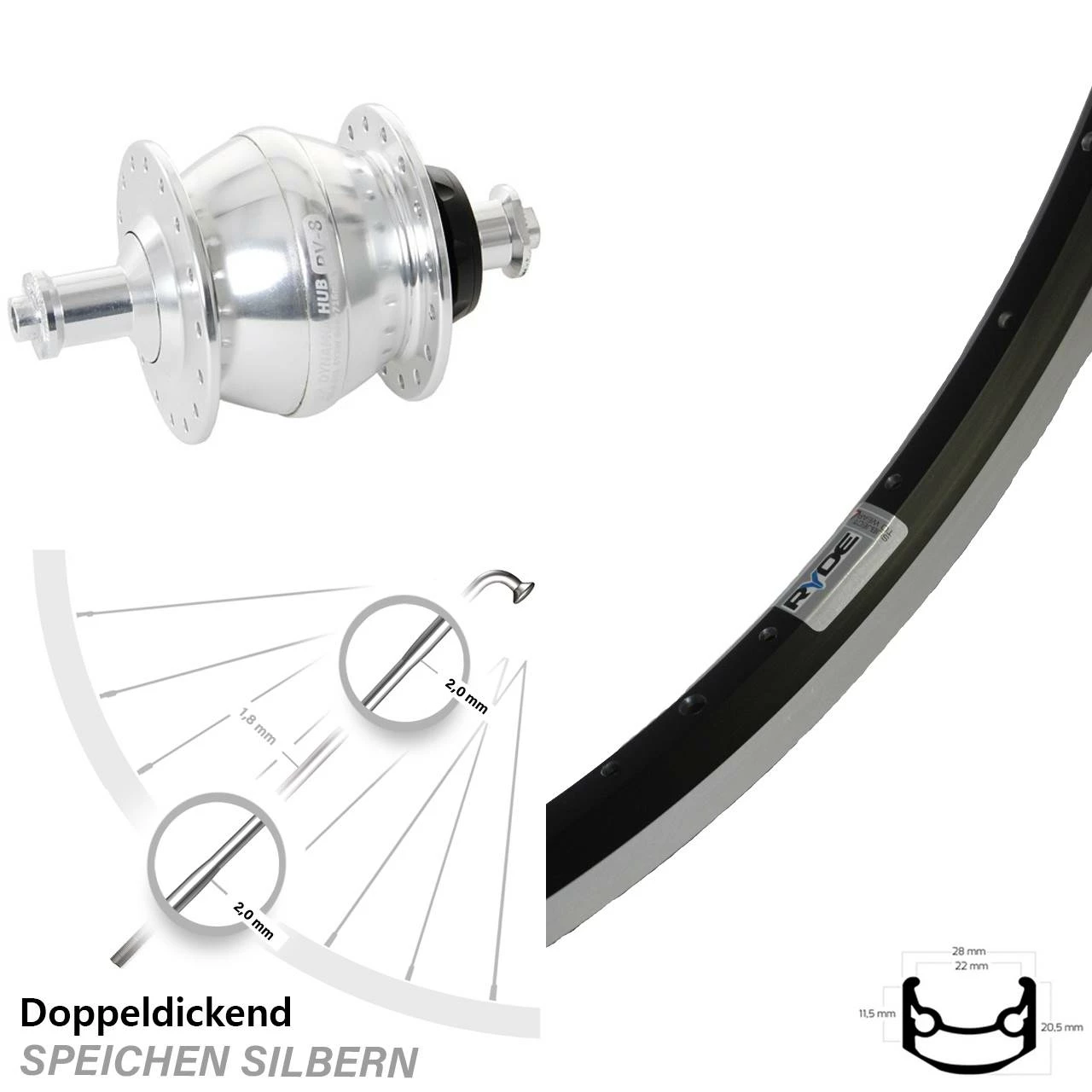 - Vorderrad 27,5 Zoll Ryde Andra 35 schwarz mit Nabendynamo Shutter Precision PV-8 silbern