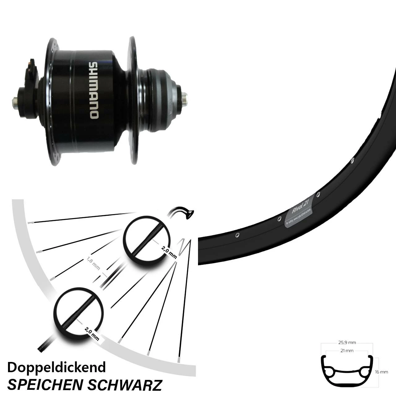 Technische Daten vorderes Laufrad Ryde Rival 21 Disc schwarz & Nabendynamo Shimano DH-3D72 schwarz