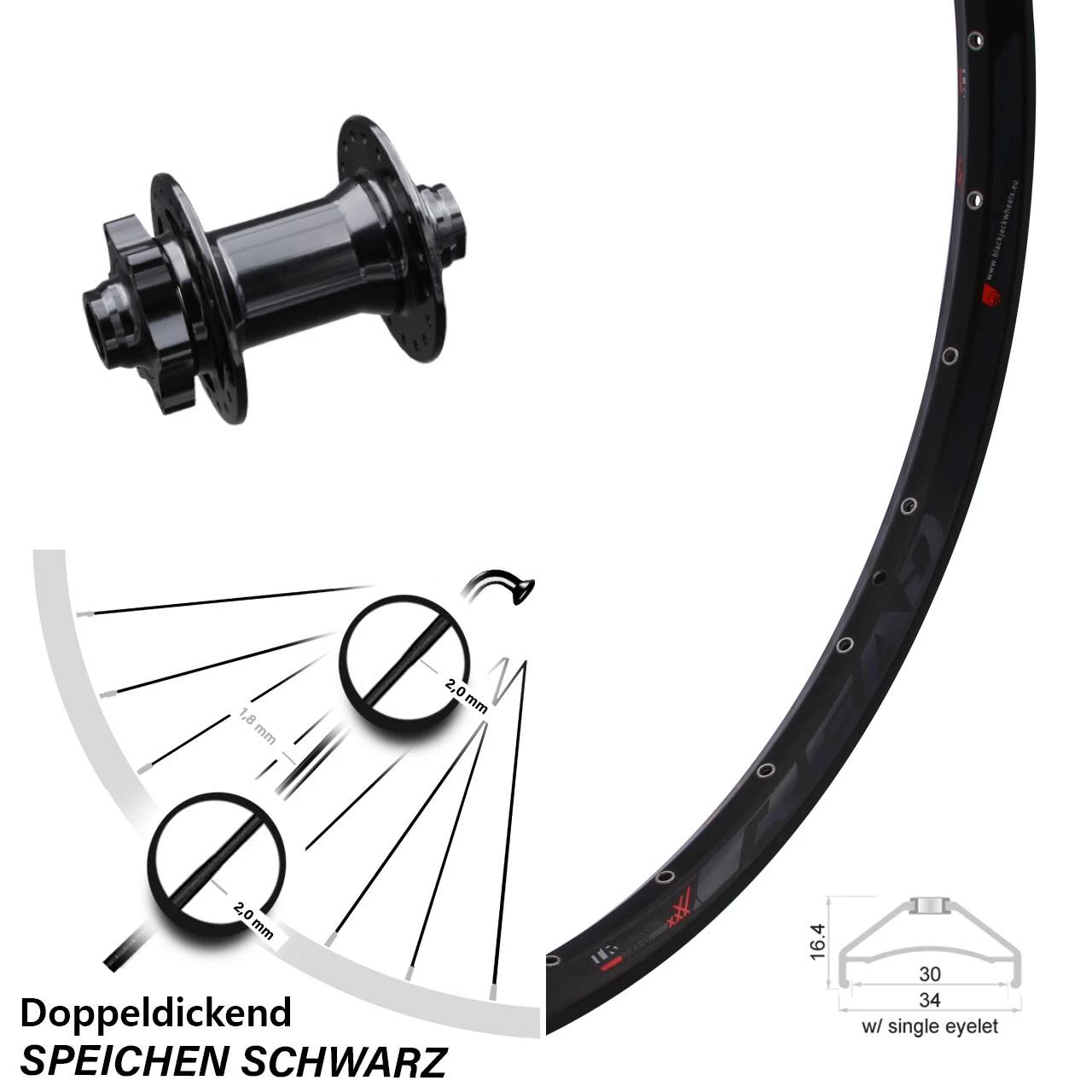 Technische Daten Vorderrad Rodi Ready 30 schwarz mit Nabe Formula DHDC-71 schwarz