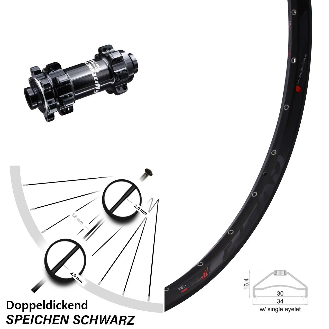 Technische Daten Vorderrad Rodi Ready 30 schwarz mit Nabe Syntace Straightpull 15×110 Boost