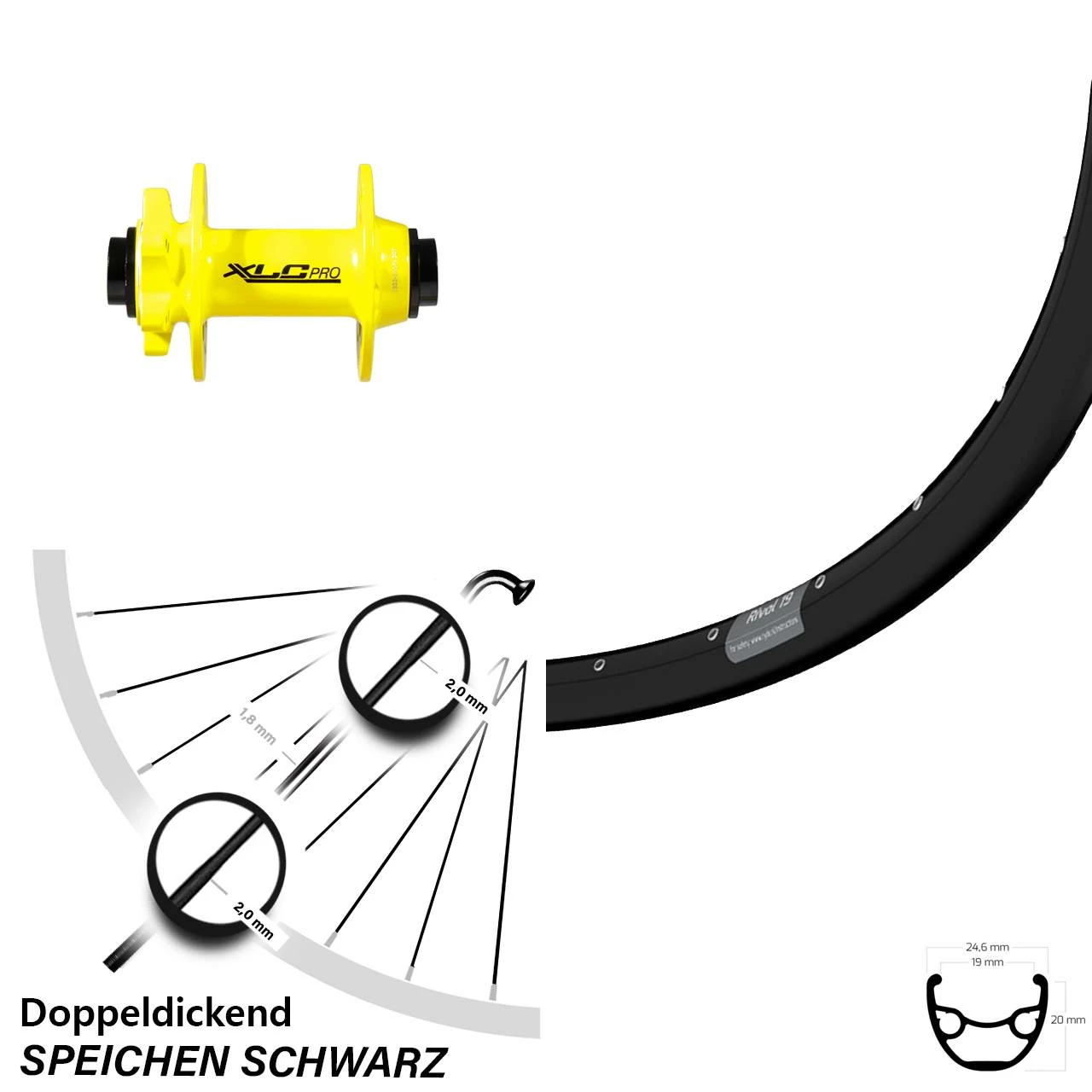 Technische Daten Vorderrad Ryde Rival 19 Disc schwarz mit Nabe XLC Pro VR Disc gelb Steckachse