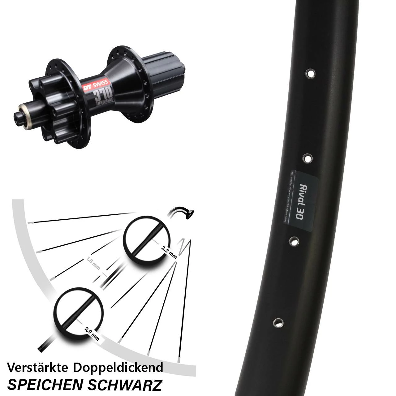 29/29+ Zoll Hinterrad DT Swiss 370 QR Shimano 11-fach Ryde Rival 30 Disc für 6-Loch mit verstärkten Doppeldickendspeichen