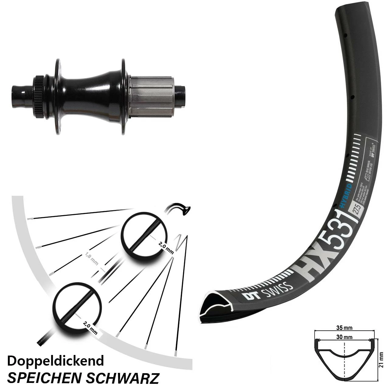 - Felge: DT Swiss HX 531 DB Disc schwarz