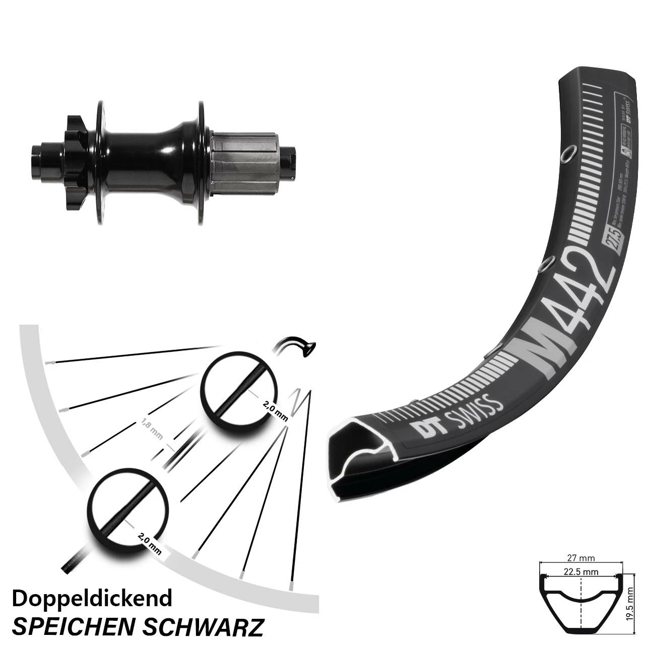 Technische Daten Hinterrad DT Swiss M 442 DB Disc schwarz und Nabe Formula DHG-142 schwarz