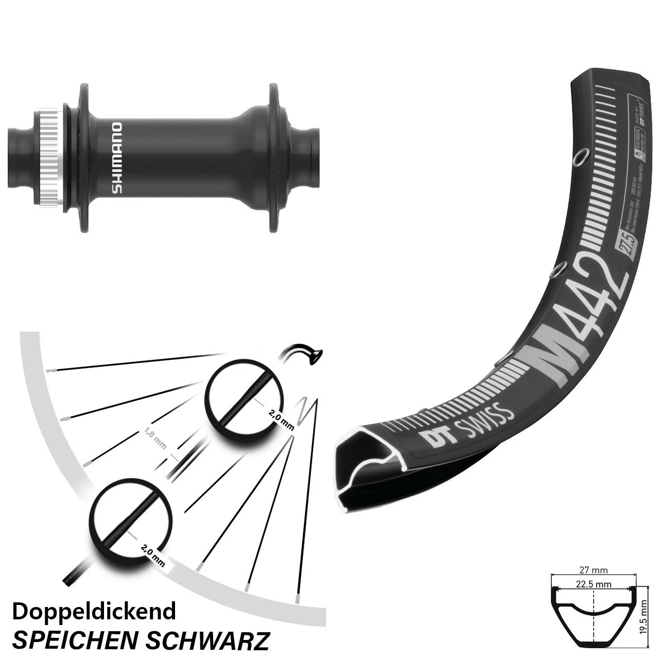 - 27,5 Zoll Vorderrad DT Swiss M 442 mit Shimano HB-MT410 Nabe