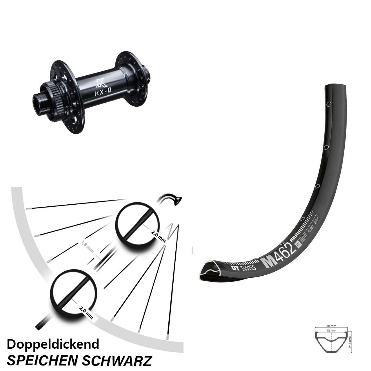 Technische Daten Vorderrad DT Swiss M 462 Disc schwarz mit Nabe KX-B Boost Vorderradnabe 15/110 Centerlock