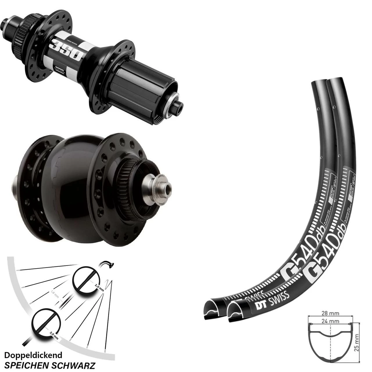 - 1 Son28 schwarz DT Swiss G 540 Laufrad 28, 29 Zoll (Auswahl zwischen Messingnippel schwarz, Messingnippel silbern)