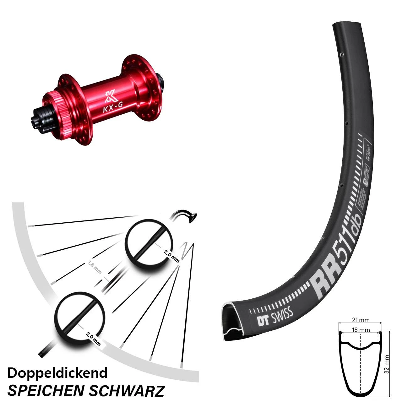 Produktbeschreibung 28 Zoll Vorderrad KX-G Nabe rot-eloxiert 5×100 DT Swiss RR 511 DB Centerlock