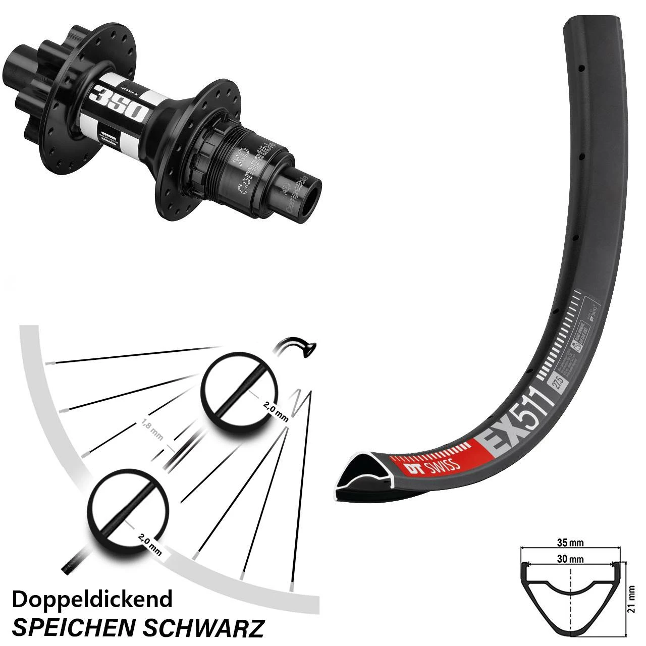 Technische Daten Hinterrad DT Swiss EX 511 Disc schwarz und Nabe DT Swiss 350 Disc 6-Loch SRAM XD 12/142