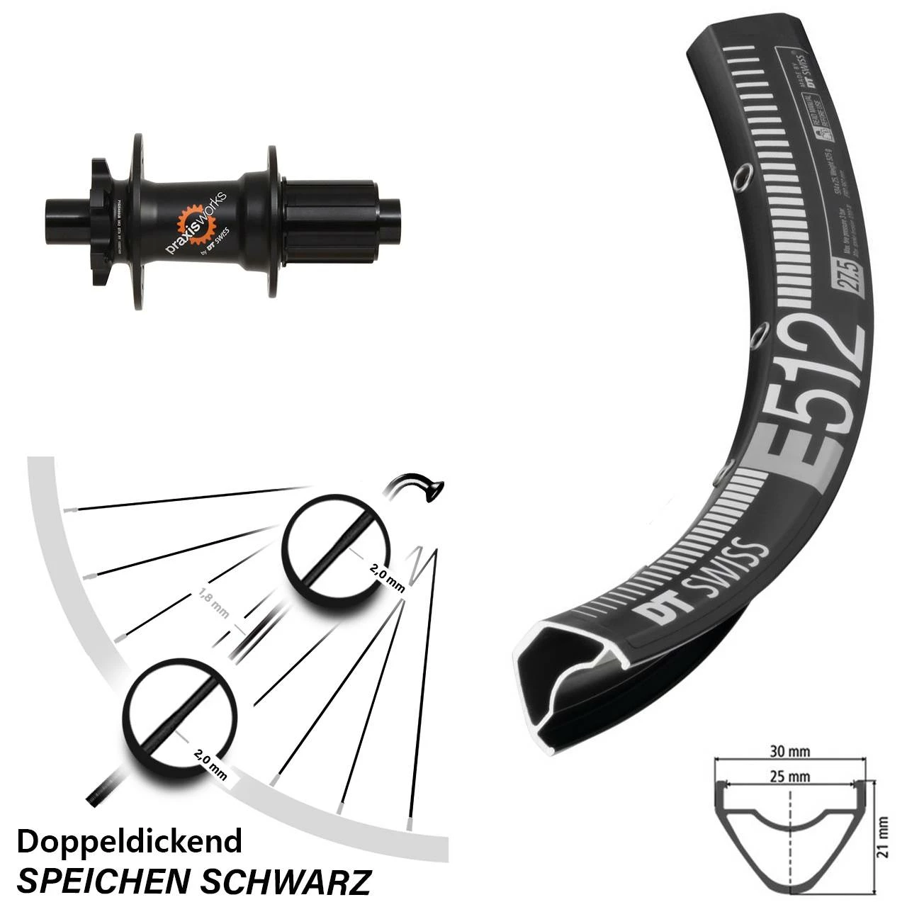 - Felge: DT Swiss E 512 DB Disc schwarz