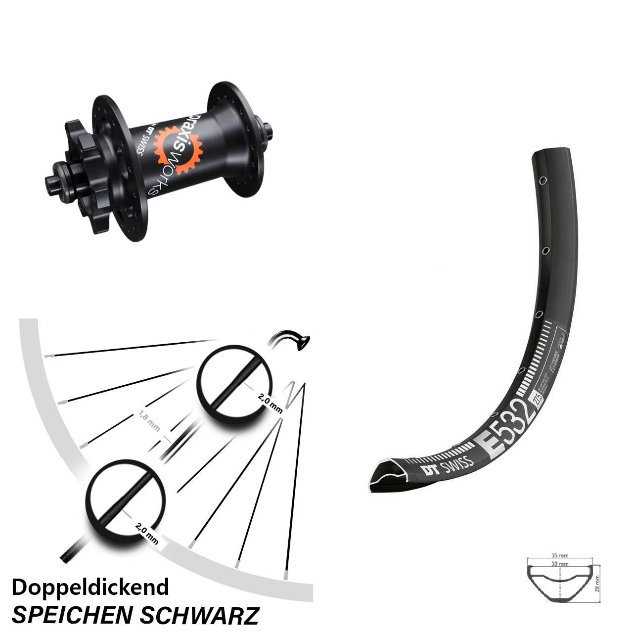 Technische Daten Vorderrad DT Swiss E 532 Disc schwarz mit Nabe DT Swiss 350 SL Disc 6-Loch 5/100