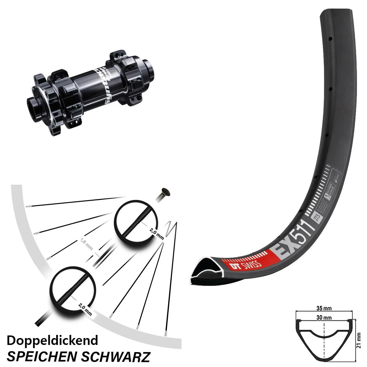 Technische Daten Vorderrad DT Swiss EX 511 Disc schwarz mit Nabe Syntace Straightpull 15×110 Boost