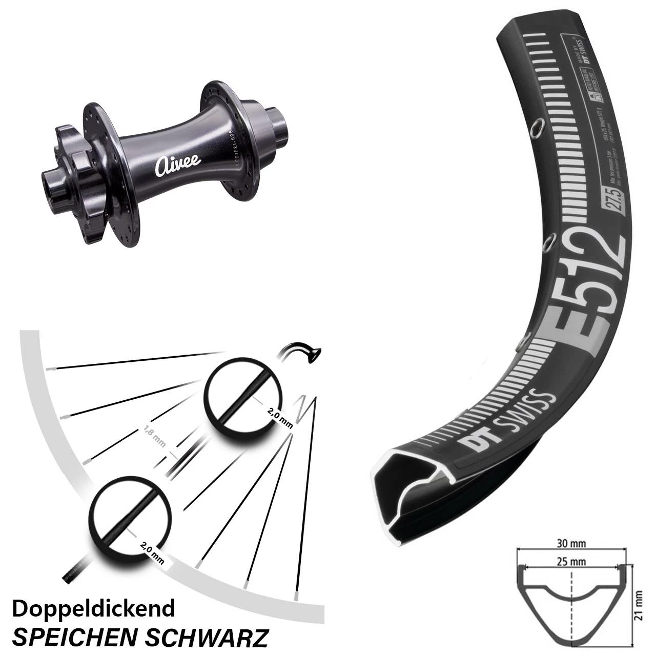 - Aivee Classic Boost DT Swiss E 512 Vorderrad 27,5 Zoll