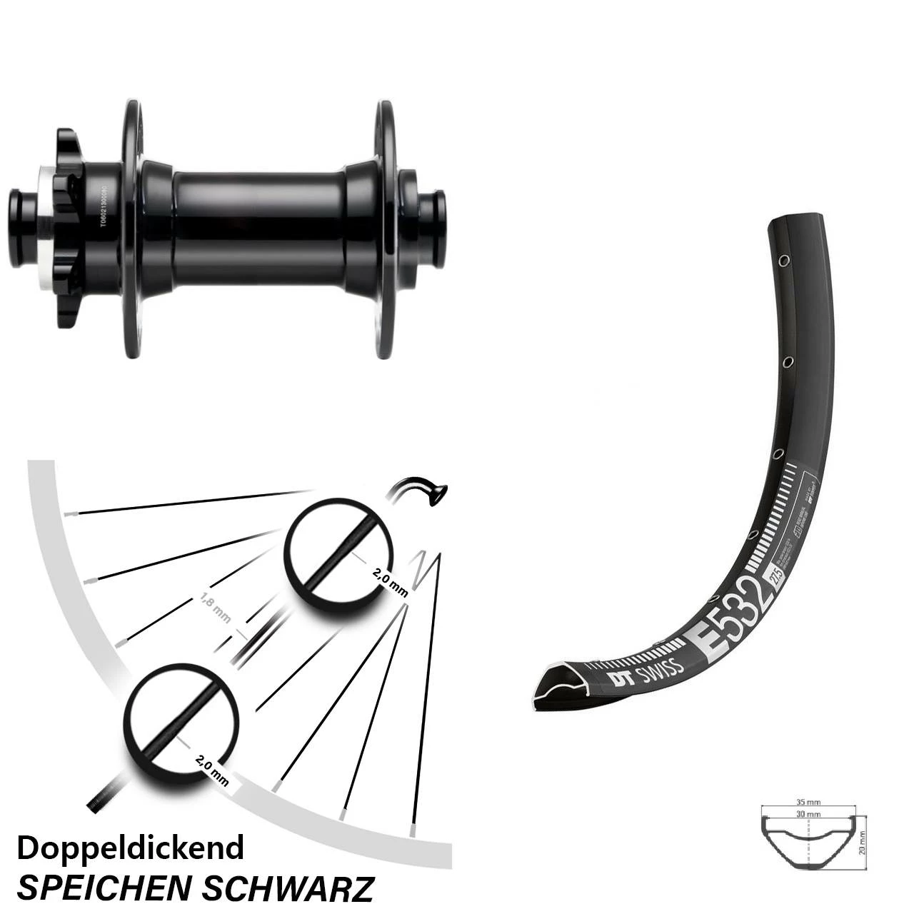 Technische Daten Vorderrad DT Swiss E 532 Disc schwarz mit Nabe Novatec D341-B15 Boost schwarz