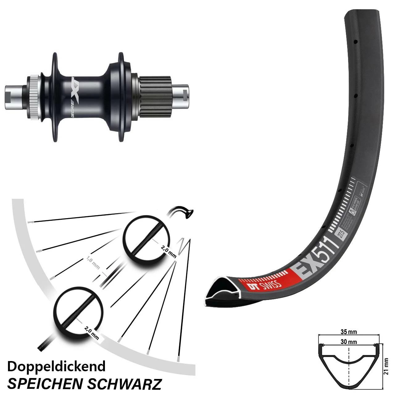 Produktbeschreibung DT Swiss EX 511 Disc-Hinterrad 27,5 Zoll Shimano XT 12-Fach