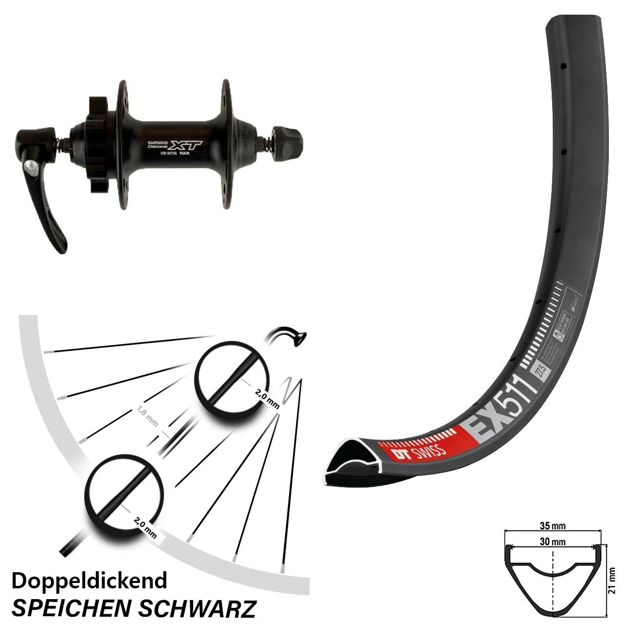 Technische Daten Vorderrad DT Swiss EX 511 Disc schwarz mit Nabe Shimano XT HB-M756 schwarz
