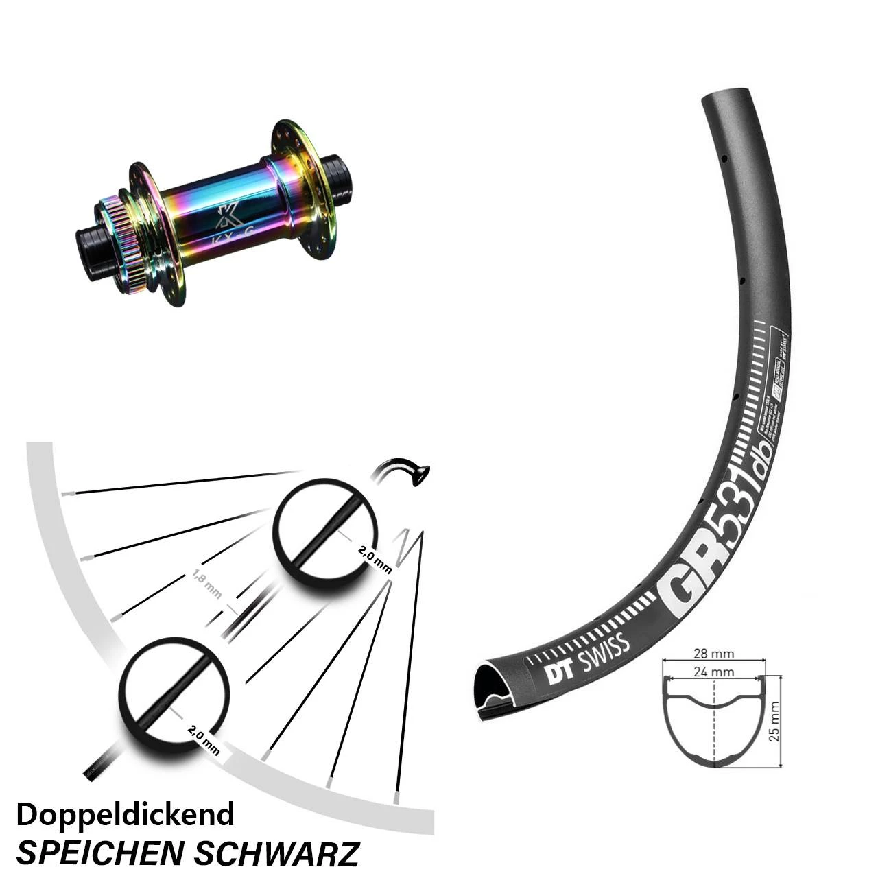 Technische Daten Vorderrad DT Swiss GR 531 DB Disc schwarz mit Nabe KX-G Vorderradnabe Oilslick Centerlock 12/100