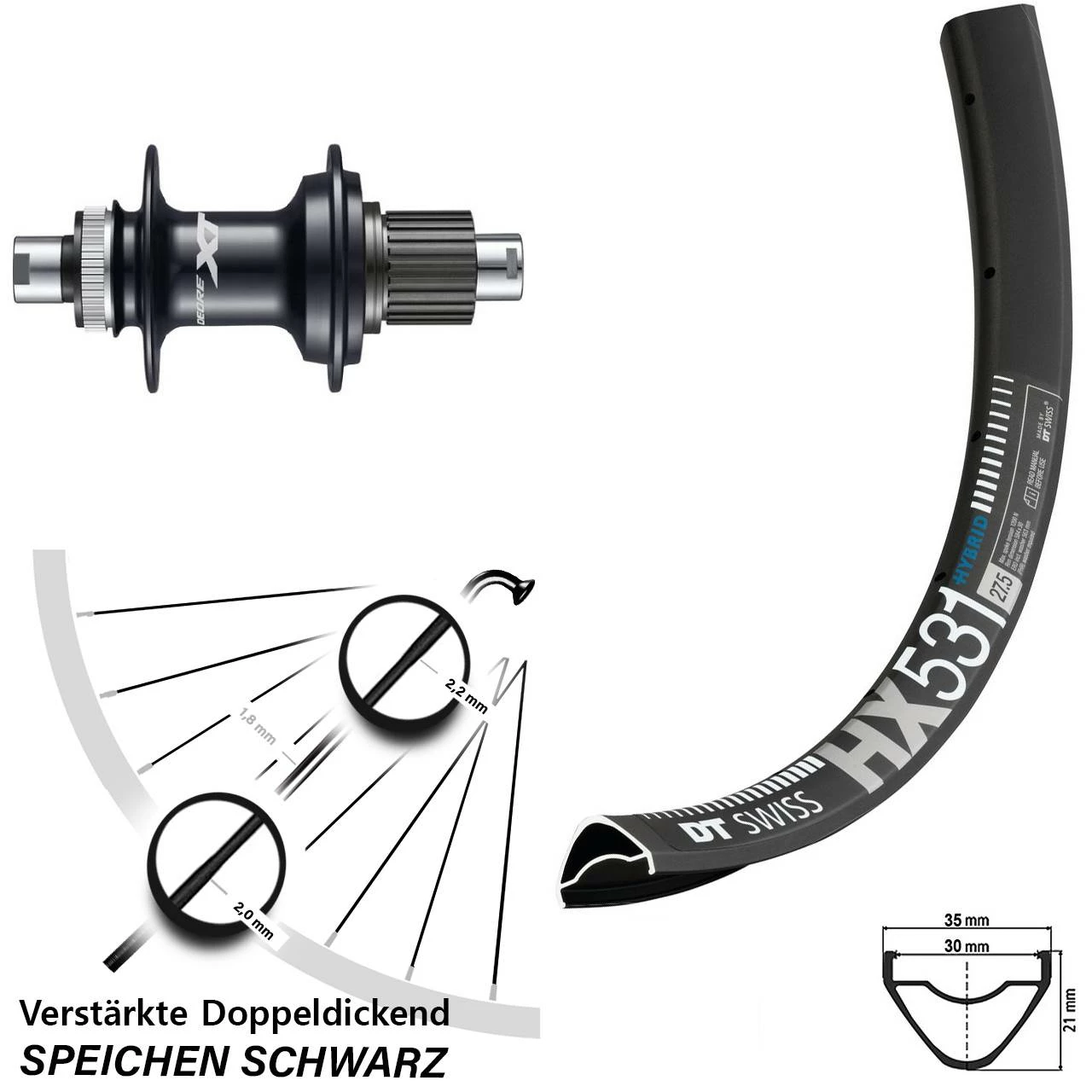 Produktbeschreibung DT Swiss HX-531 Disc-Hinterrad 27,5 Zoll Shimano XT 12-Fach