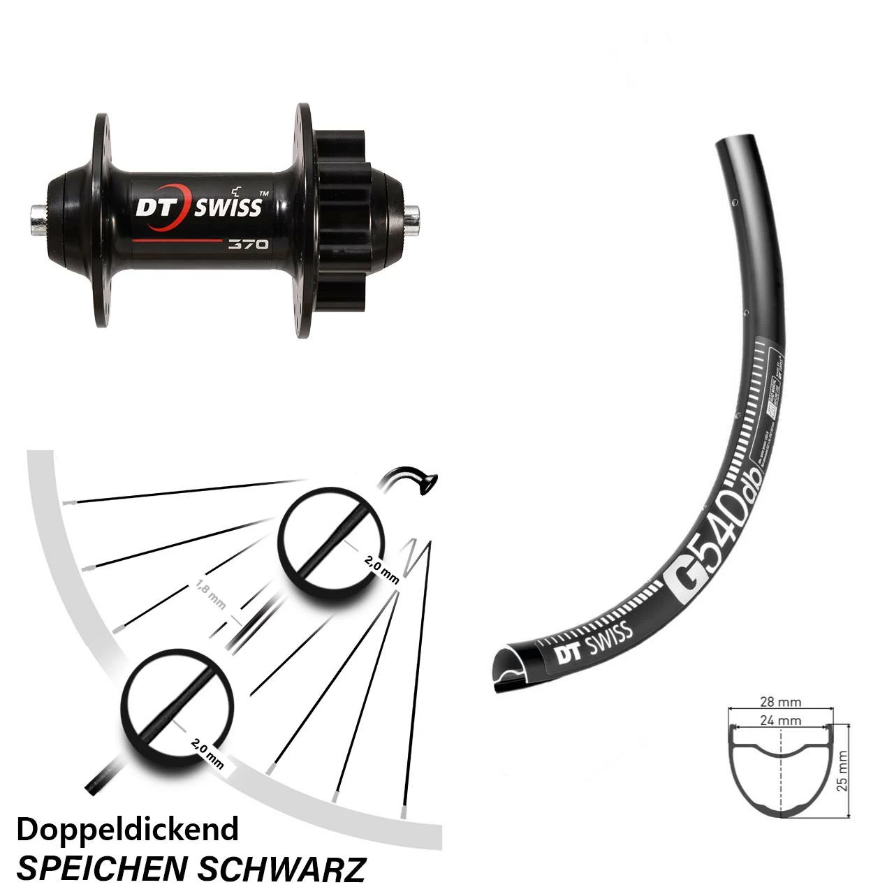 Technische Daten Vorderrad DT Swiss G 540 DB Disc schwarz mit Nabe DT Swiss 370 Disc 6-Loch 5/100