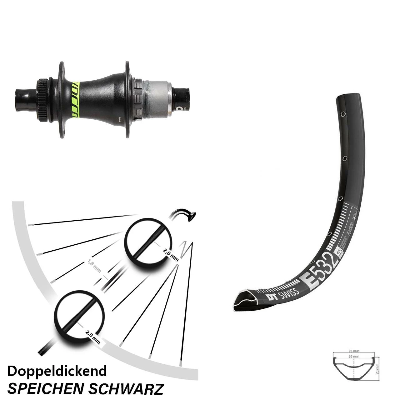 Technische Daten Hinterrad DT Swiss E 532 Disc schwarz und Nabe Formula CL-1421 Syncros XD
