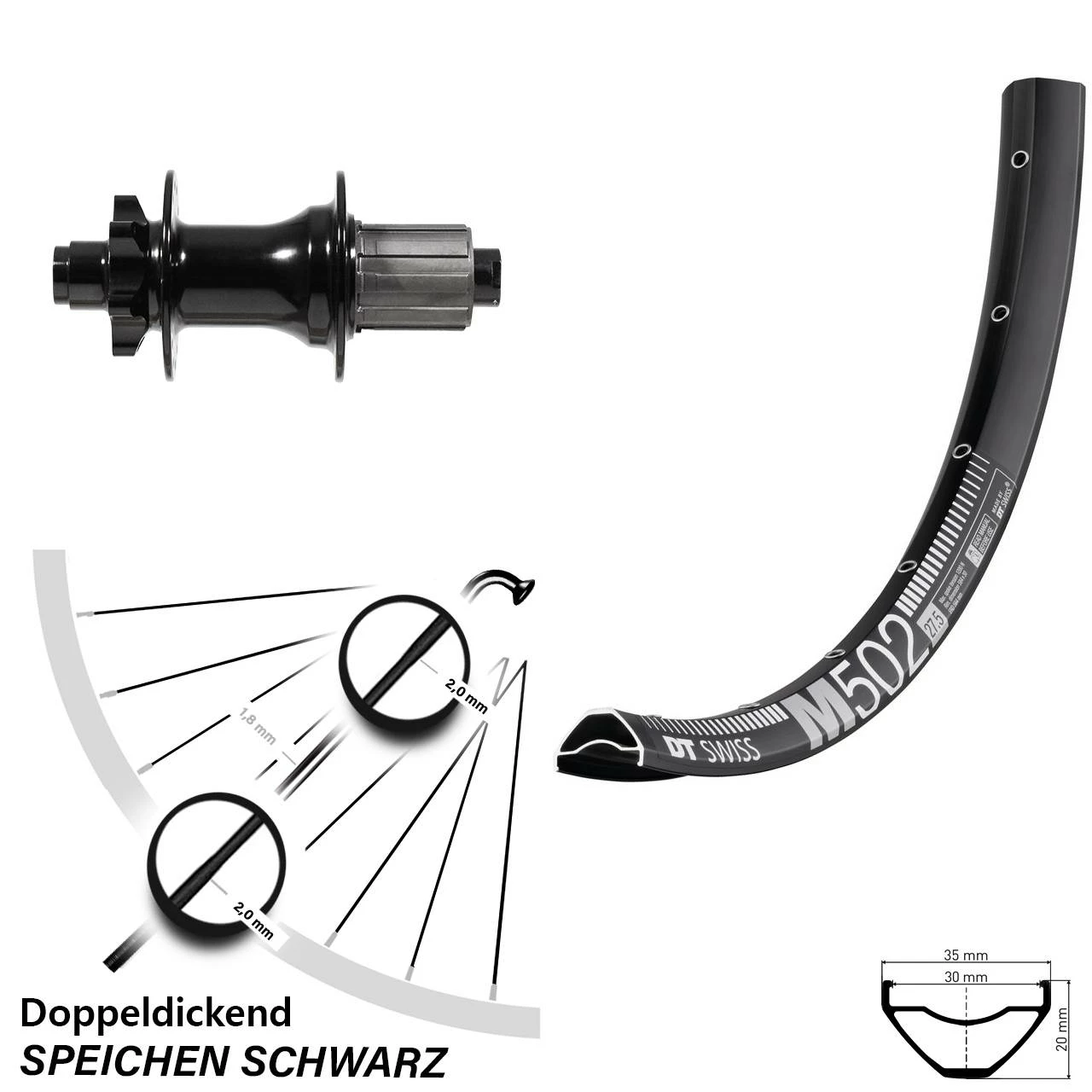 Technische Daten Hinterrad DT Swiss M 502 DB Disc schwarz und Nabe Formula DHG-142 schwarz