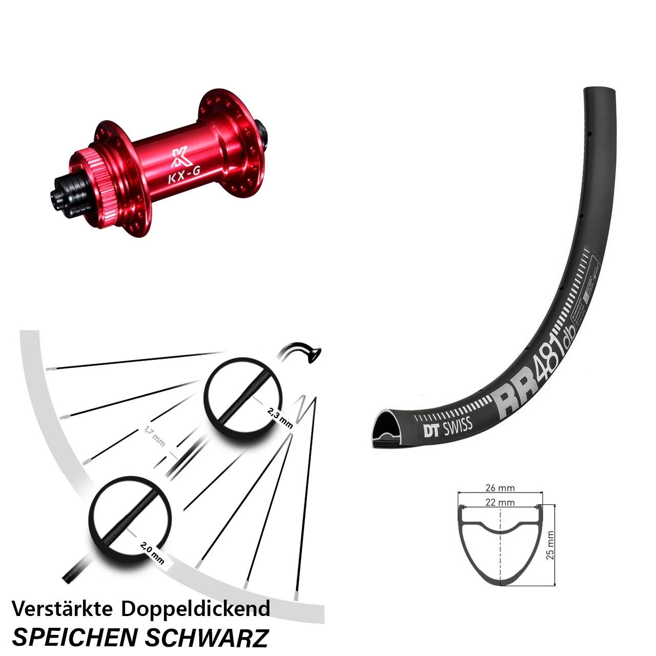 - Laufrad 28 Zoll DT Swiss RR 481 DB Disc verstärkt KX-G Vorderradnabe rot 5×100 mm