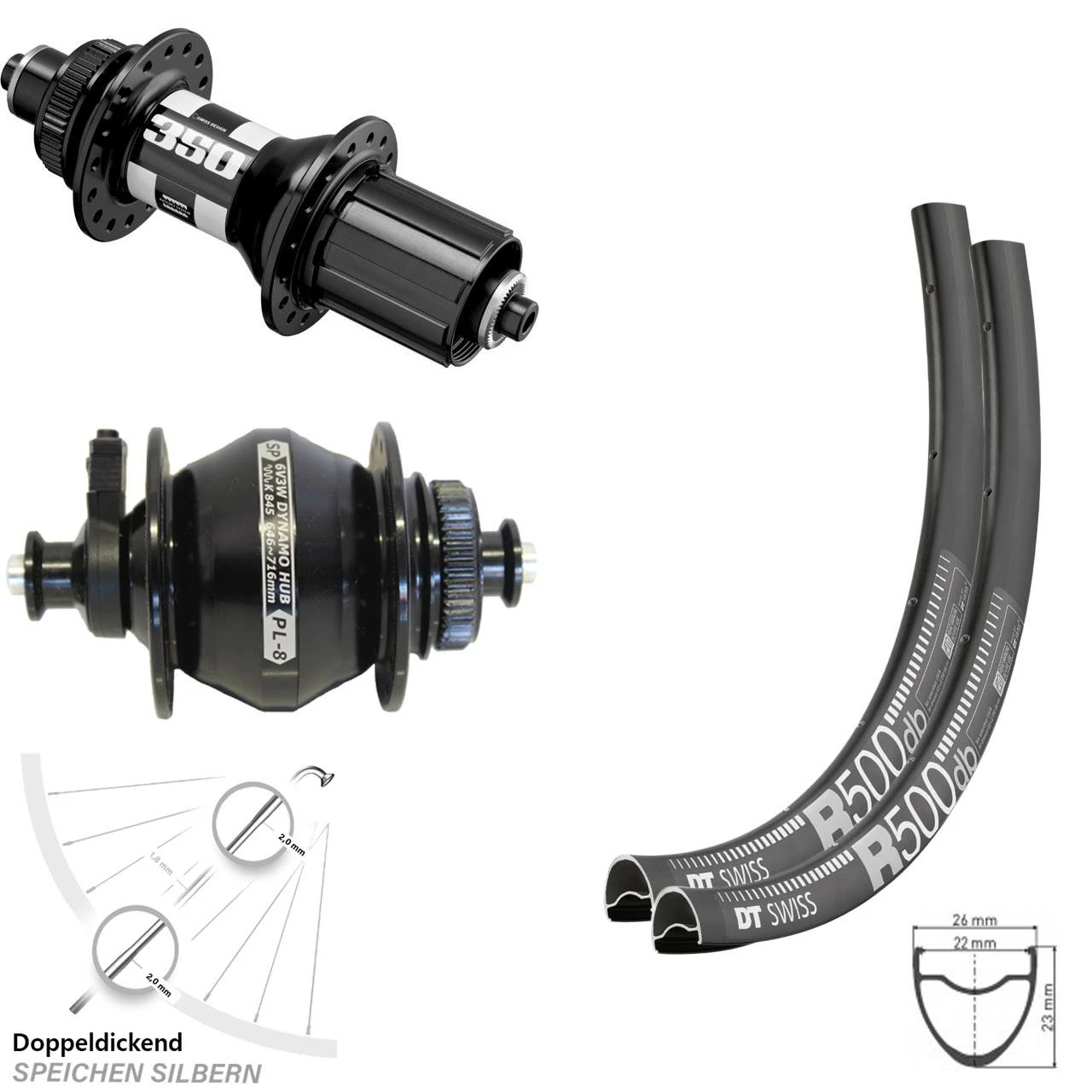 Technische Daten Laufradsatz 28 Zoll DT Swiss R 500 Nabe 350 Centerlock 11-fach Dynamo Shutter PL-8
