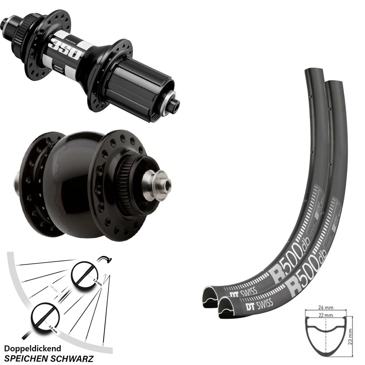 Laufradsatz DT Swiss 350 Road 11-fach QR SON Delux Dynamo Centerlock 28 Zoll R 500 mit Doppeldickendspeichen