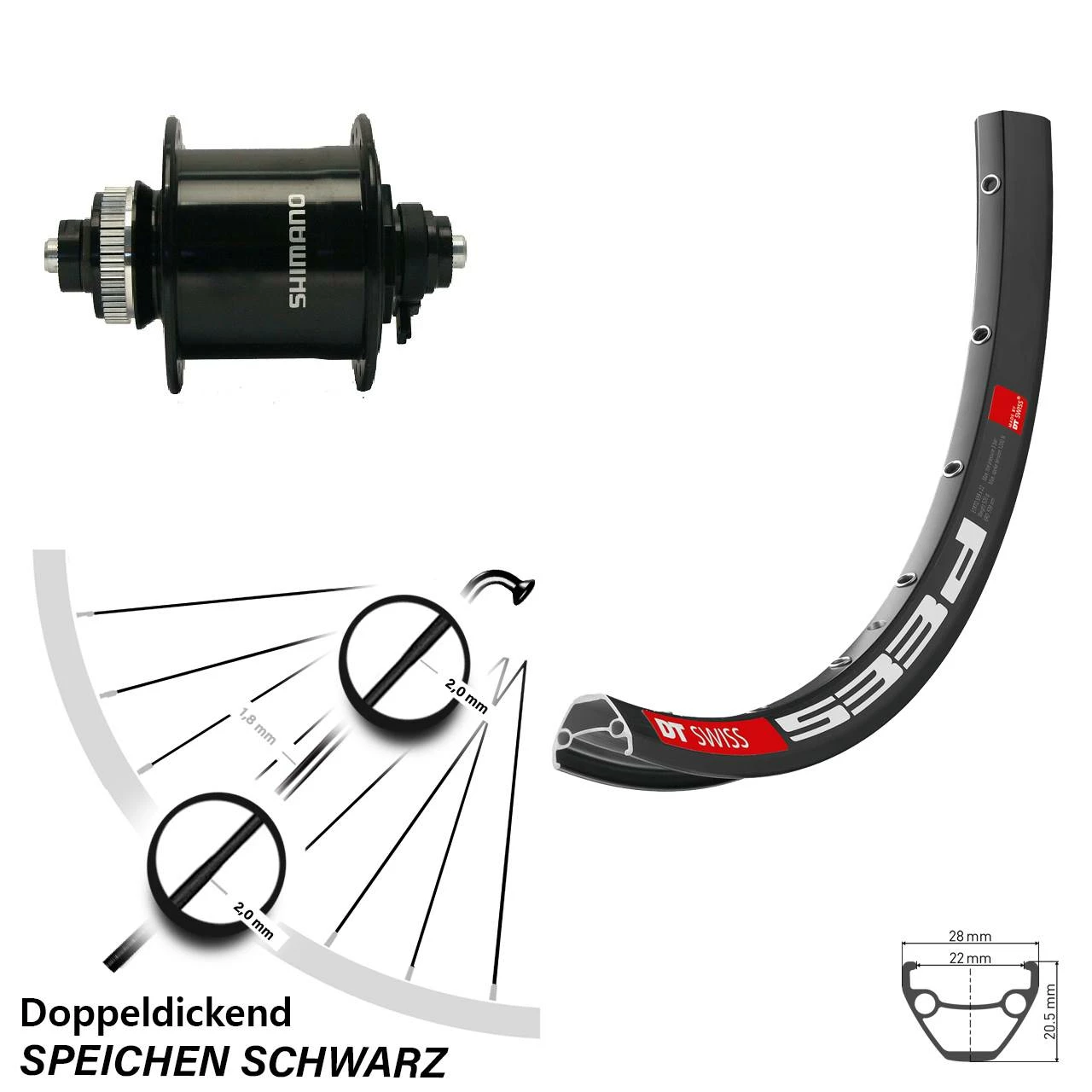 - Vorderrad 27,5 Zoll DT Swiss 533 D schwarz mit Nabendynamo Shimano DH-UR700 schwarz