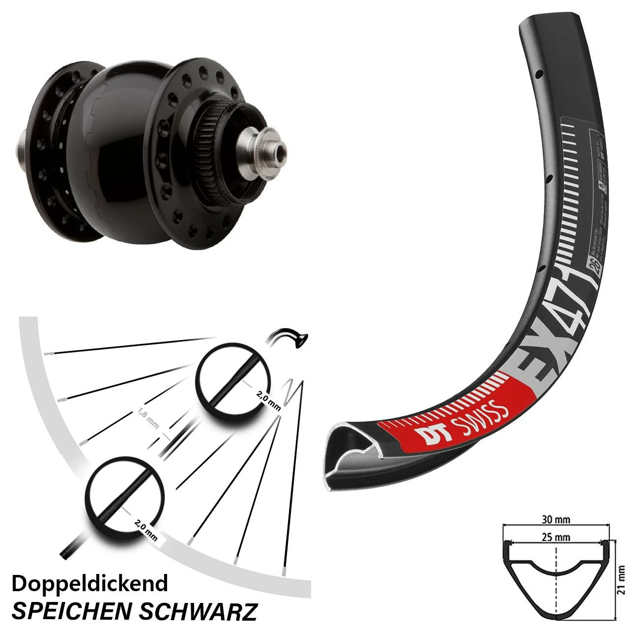 Technische Daten Vorderrad DT Swiss EX 471 DB Disc schwarz & Nabendynamo SON 28 Disc Centerlock Hohlachse schwarz eloxiert