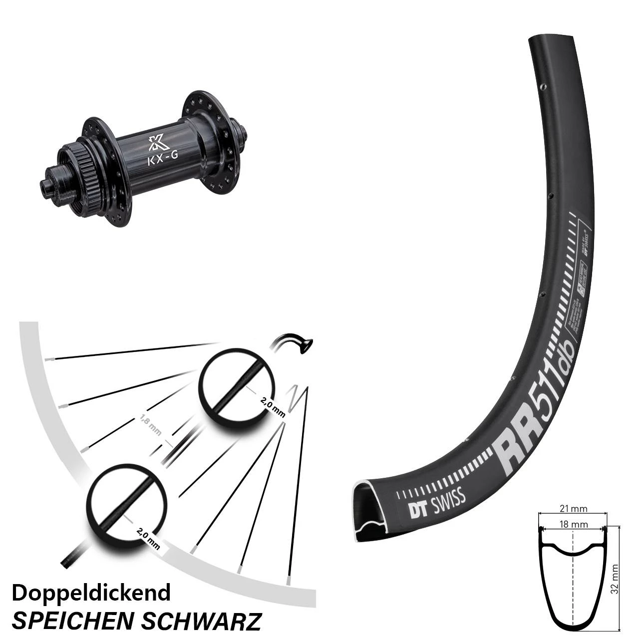 Technische Daten Vorderrad DT Swiss RR 511 DB Disc schwarz mit Nabe KX-G Vorderradnabe 5/100 Centerlock