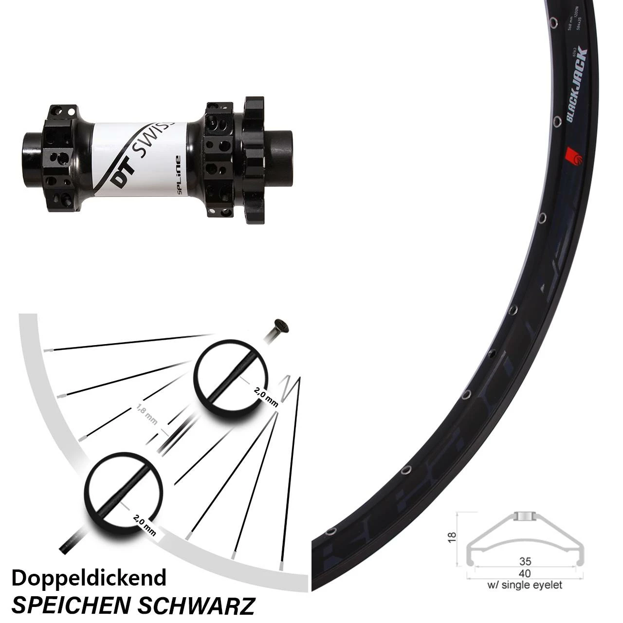 - Felge Maße: Höhe 18 mm / Breite 40 mm