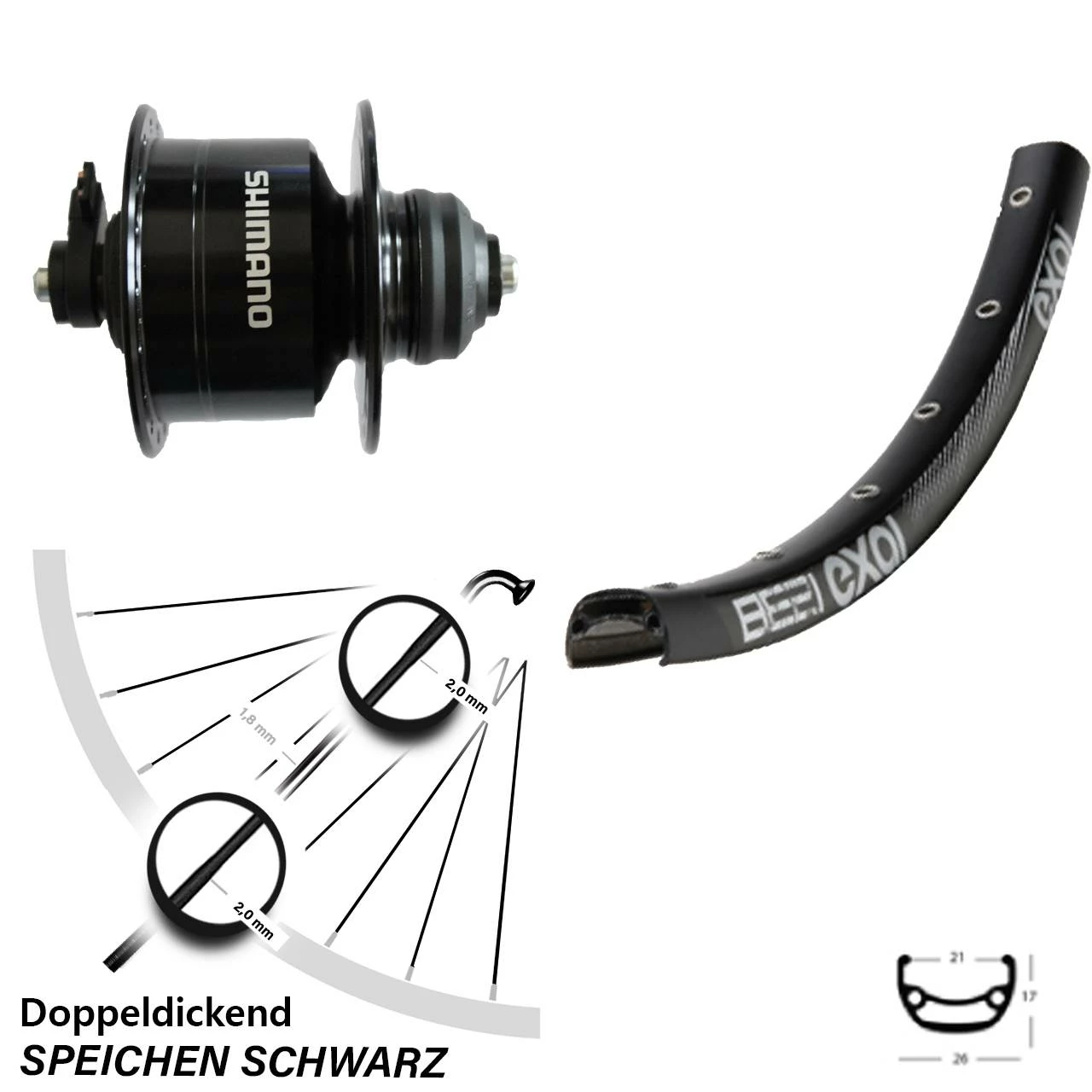 Dynamo Shimano DH3D72 Exal BE 21 Vorderrad 26 Zoll schwarz mit Doppeldickendspeichen