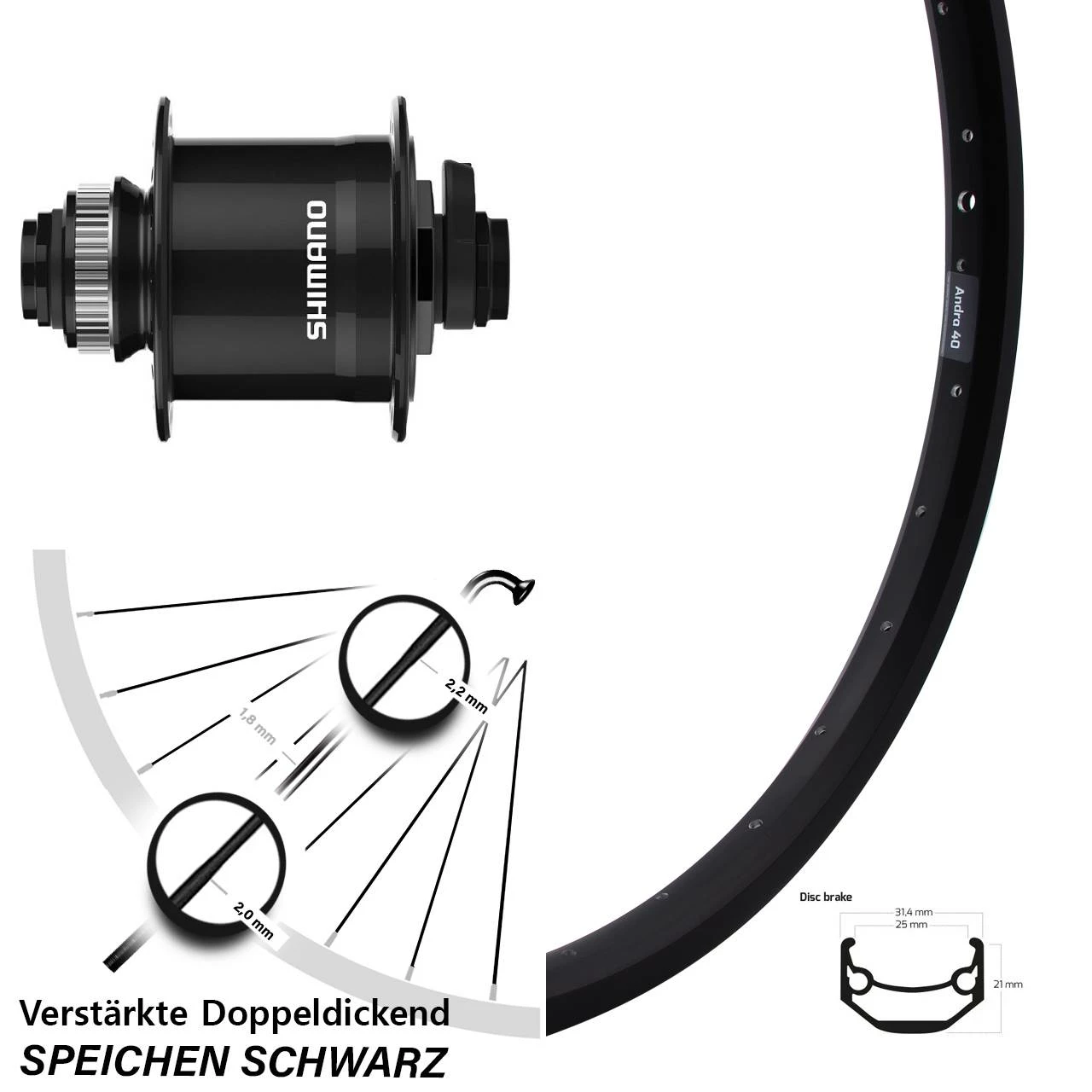 - Vorderrad 28 Zoll, 29 Zoll Ryde Andra 40 Disc schwarz mit Nabendynamo Shimano DH-UR708-3D schwarz