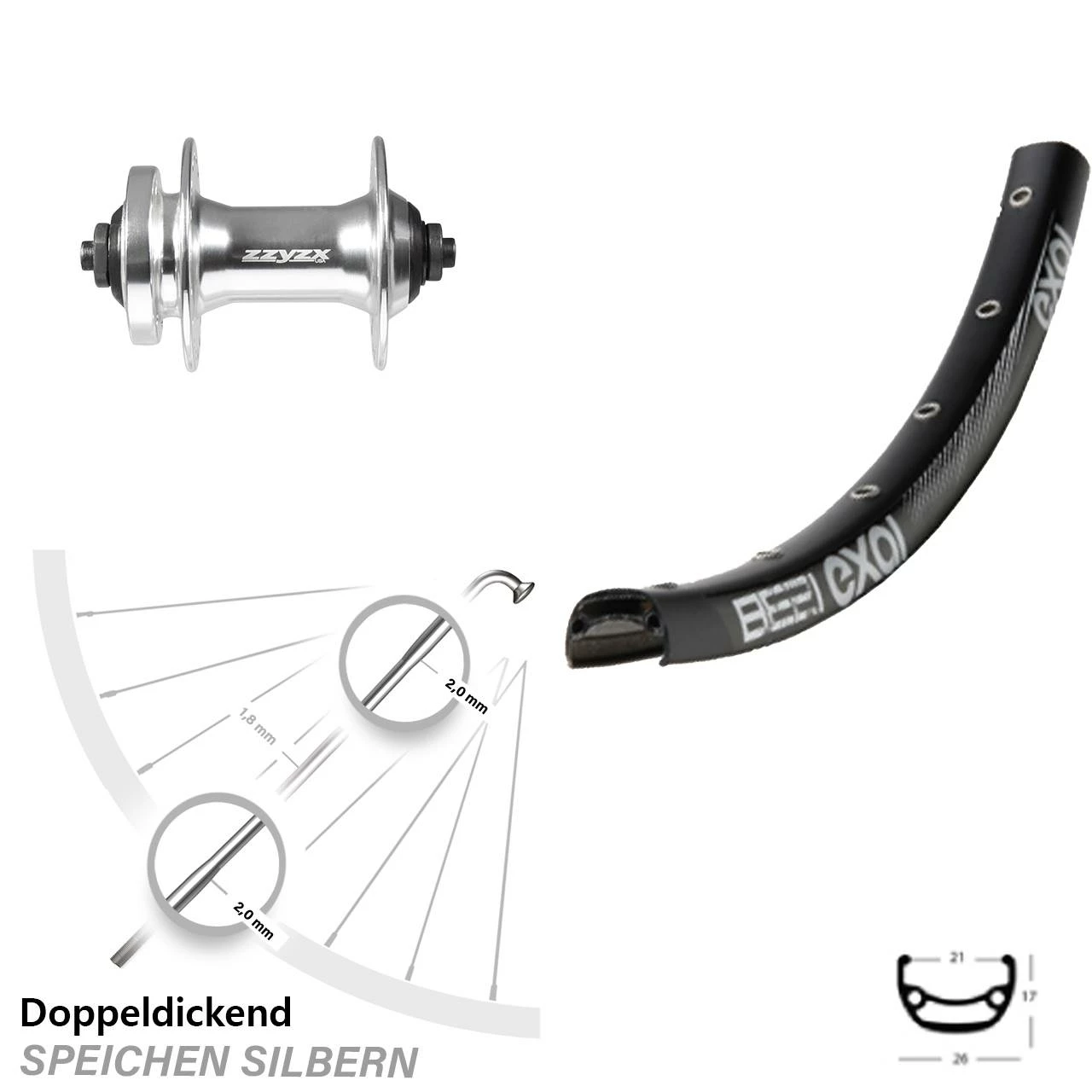 Technische Daten Vorderrad Exal BE 21 schwarz mit Nabe Formula ZZYZX DC-21 silbern