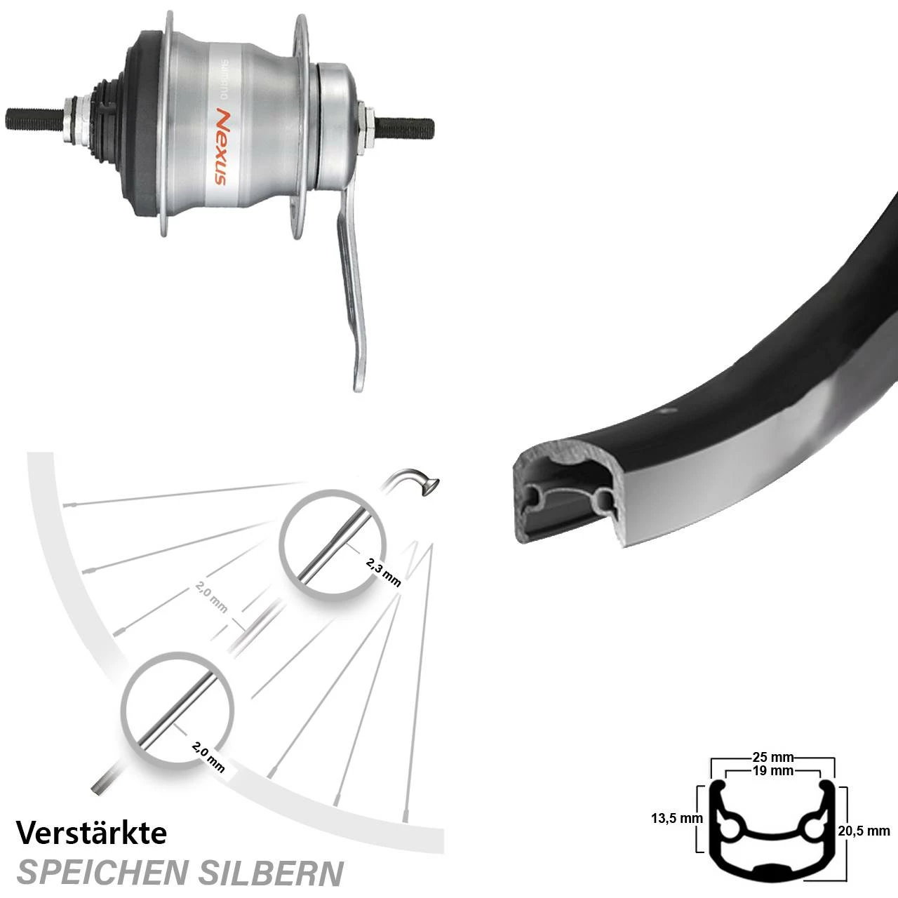 Technische Daten Hinterrad Ryde Andra 30 Felgenbremse schwarz und Nabe Shimano Nexus 7-Gang SG-7C30 silbern