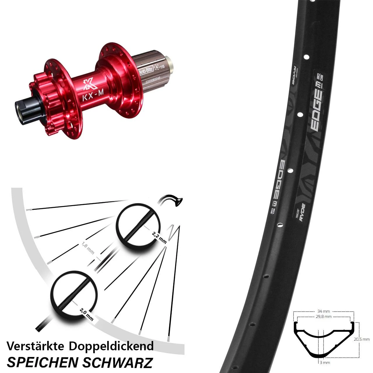 Hinterrad 27,5 Zoll 12×142 mm Ryde Edge M30-622 OS KX-M 6-Loch Nabe rot eloxiert mit verstĂ€rkten Doppeldickendspeichen