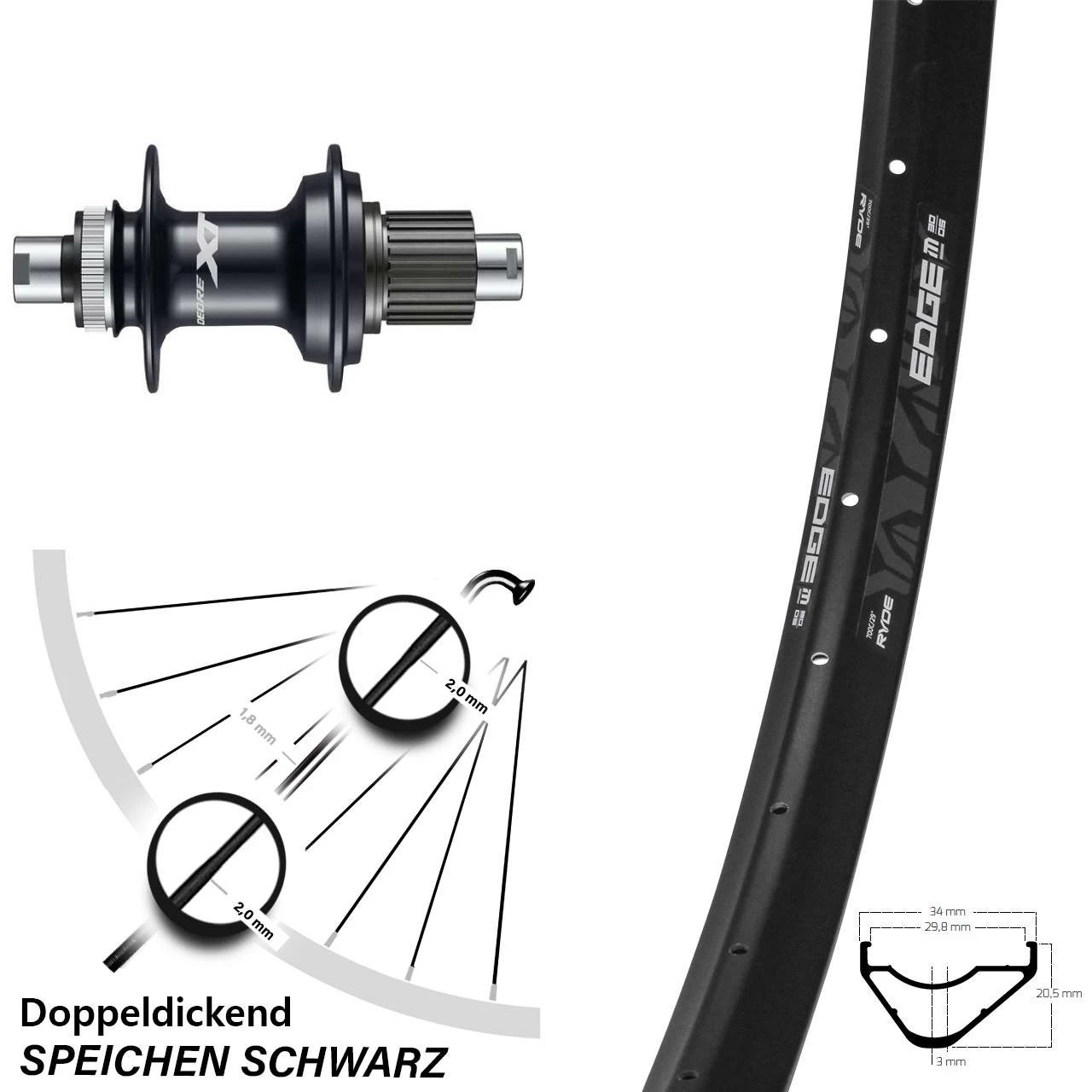Technische Daten Hinterrad Ryde Edge M30 OS Disc schwarz und Nabe Shimano Deore XT FH-M8110 Hinterradnabe schwarz