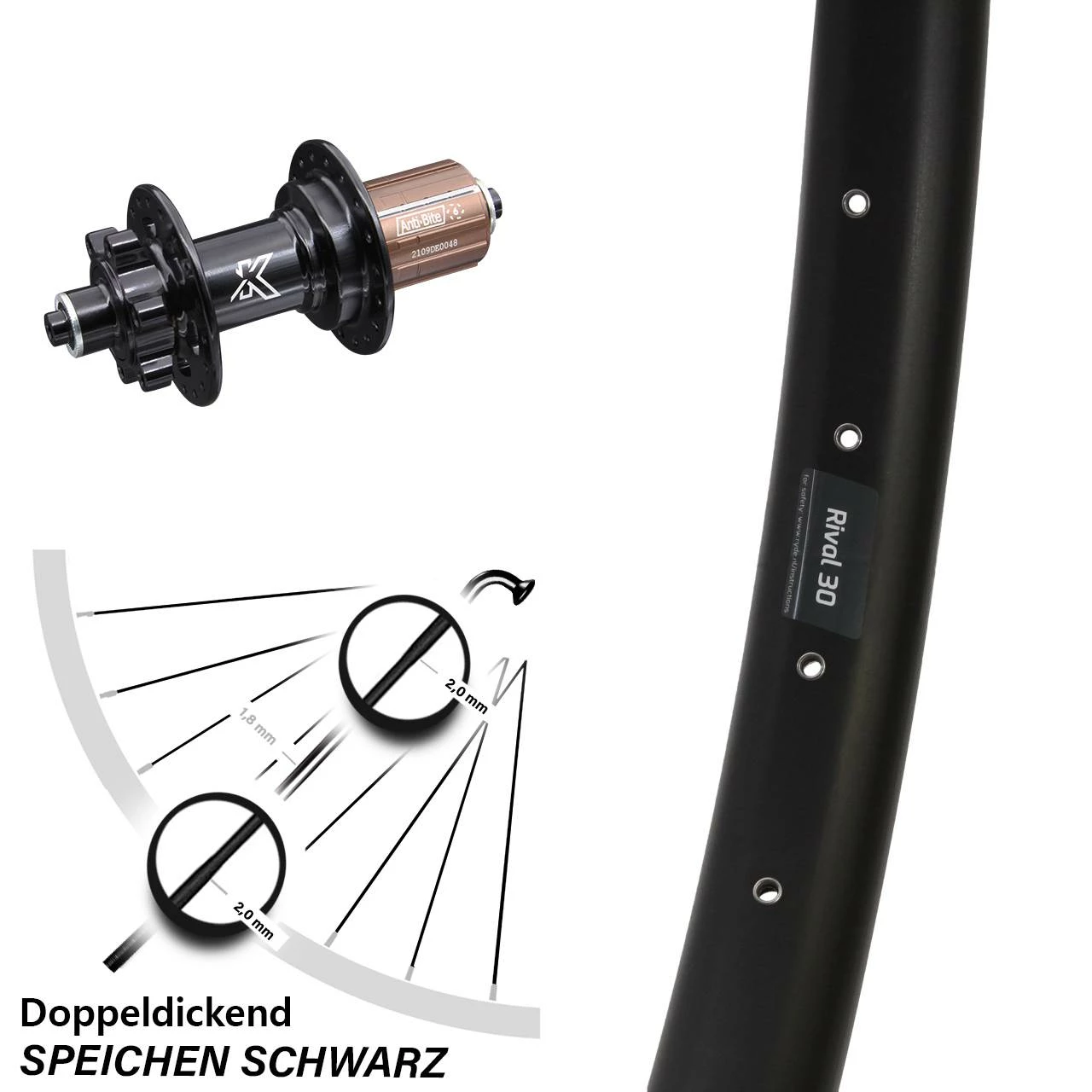 KX-M 6-loch Ryde Rival 30 Hinterrad 29 Zoll 10-fach mit Doppeldickendspeichen